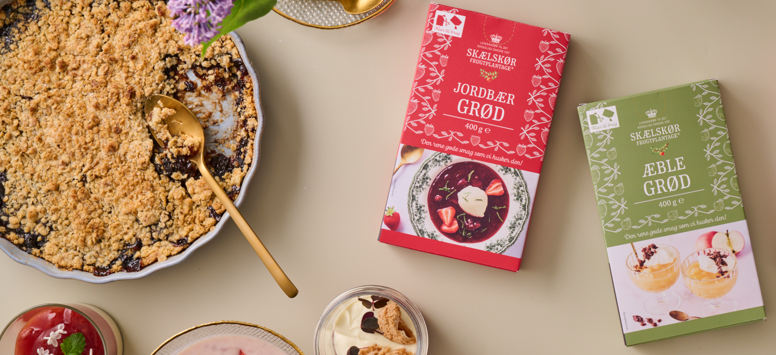 Vores frugtgrød er den ideelle løsning til dig, som ikke har tiden til at stå flere timer i køkkenet for at lave den gode dessert. Med sortimentet af forskellige velsmagende frugtgrød, har vi skabt den hurtige løsning til dig, hvor du ikke behøver at gå på kompromis med den gode smag. Prøv opskriften på disse skønne portionsanrettede jordbærtrifli – en utrolig nem dessert, som du kan servere for gæster.